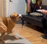 誕生日を祝ってもらった犬…見事にケーキのロウソクの火を吹き消す(動画)