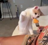 猫が初めてのメロン…興奮してパンチしながら食べる(動画)