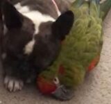 ラブラブなインコと犬…寝ても覚めてもピッタリと寄り添う(動画)