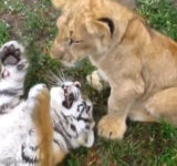 「虎とライオンが対決すると…こうなるのか!」(ただし赤ちゃん同士)