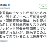 【鳩山由紀夫】「ノーベル平和賞を受賞したIPPNWは、『放射能オリンピック』と命名し汚染リスクの残る東京での開催を疑問視している」
