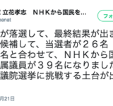 【選挙速報】NHKから国民を守る党、統一地方選で47名立候補し26人当選 現職13名と合わせて所属議員39人に