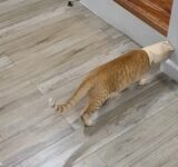紙袋が頭から抜けなくなった猫…壁にコッツンしてしまう(動画)