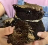 手乗りミニドラゴンと呼ばれる鳥「オオミミヨタカ」は大きな目や羽毛が特徴的(動画)