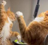 ゆっくりケンカする猫2匹…大げさな動きだけど平和(動画)