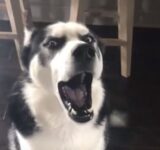 叱られると「わおーん」と鳴いて反抗してくるハスキー犬(動画)