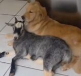犬をママだと思っている子ヤギが甘えると…少し苦しそう
