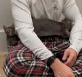 「子猫たちが自分のまわりを走り回ると…何匹かわからない!」(動画)