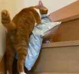 猫「一緒に寝たいの…」クッションを寝室まで運んでアピールする姿にほっこり