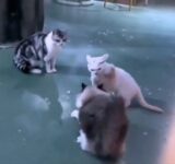 猫2匹が取っ組み合いの大ゲンカを始めるも…親分猫がひとにらみで止める