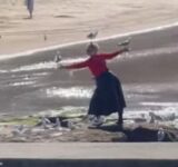 「海鳥と通じ合う心…」浜辺でディズニープリンセスごっこをする女性(動画)