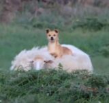 小さな犬が…誇らしげに羊に騎乗していた(動画)