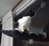 猫が自分が乗っているベッドの命綱を噛切ってしまう