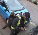 人懐っこい猫が配達ドライバーの肩に跳び乗って驚かせる(動画)