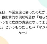 先日、卒業生達と会ったのだが、一番衝撃的な現状報告は「知らないうちに亡国の貴族になってました」というものだった→「マジやん…」