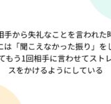 相手から失礼なことを言われた時には「聞こえなかった振り」をしてもう1回相手に言わせてストレスをかけるようにしている