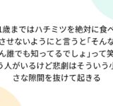 1歳まではハチミツを絶対に食べさせないようにと言うと「そんなん誰でも知ってるでしょ」って笑う人がいるけど悲劇はそういう小さな隙間を抜けて起きる