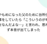 やもめになった父のために台所仕事をしていたら「こういうのが幸せなんだよな…」と言われ、思わず本音が出てしまった