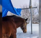 帯広のドカ雪で困った馬車BARさん、元ばんえい馬に応援を頼む→大雪をズンズンと進む様子がパワフルでかわいい「やっぱり無理でしたわ」