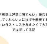 「悪意は好意に勝てない」挨拶をしてくれない人に挨拶を無視するというストレスを与えたくて大声で挨拶してる話