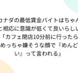 カナダの最低賃金バイトはちゃんと相応に意識が低くて良いらしい「カフェ閉店10分前に行ったらめっちゃ嫌そうな顔で『めんどい』って言われる」