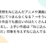 思想をねじ込んだアニメや漫画は総じてつまんなくなる?→そういう作品でも面白いのはたくさんあるし、上手い作品は「ねじ込んだ」印象を与えずねじ込んでる