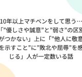 10年以上マチベンをして思う…「”優しさや誠意”と”弱さ”の区別がつかない」上に「”他人に敬意を示すこと”に”敗北や屈辱”を感じる」人が一定数いる話