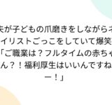 夫が子どもの爪磨きをしながらネイリストごっこをしていて爆笑「ご職業は?フルタイムの赤ちゃん?!福利厚生はいいんですねー!」