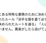とある特殊な業務のために決められたルール「派手な服を着て必ず決められたルートを通る」「人はいません。異臭がしたら逃げて」