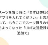スーツを買う時に『まずは弊社のアプリを入れてください』と言われて、もうここでスーツ買うのやめよってなった「LINE友達登録も追加で」