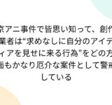 京アニ事件で皆思い知って、創作業者は“求めなしに自分のアイディアを見せに来る行為”をどの方面もかなり厄介な案件として警戒している