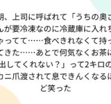 朝、上司に呼ばれて「うちの奥さんが要冷凍なのに冷蔵庫に入れちゃってて……食べきれなくて持ってきた……あとで何気なくお茶に出してくれない?」って2キロのカニ爪渡されて息できんくなるほど笑った