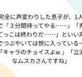 完全に声変わりした息子が、1人で「3分間待ってやる……」「鬼ごっこは終わりだ……」といい声でつぶやいては悦に入っている→「キャラのチョイスよw 」「立派なムスカさんですね」