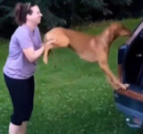 飼い主「さあ、車に乗るよー」犬「もっと遊びたい!」→体をピーンと張って抵抗する