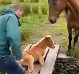 ママ馬「子馬を助けてくれてありがとう!」真っ先に男性に感謝する(動画)