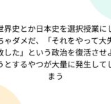 世界史とか日本史を選択授業にしちゃダメだ、「それをやって大失敗した」という政治を復活させようとするやつが大量に発生してしまう