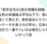 「若年女性の1割が夜職を経験、女性の幸福度は平均以下で、家は高くて買えず、表参道あたりでパンケーキを食うのが幸せ」日本の地方で一番ヤバいのは東京じゃないかって話