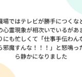 職場ではテレビが勝手につくなどの心霊現象が相次いでいるがあまりにも忙しくて「仕事手伝わんなら邪魔すんな!!!」と怒鳴ったら静かになりました
