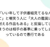 「いい年して子供番組見てるなんて」と嘲笑う人に「大人の鑑賞に耐える作品もある」と反論してしまうのは相手の基準に乗ってしまっているので愚行である