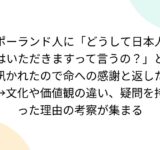 ポーランド人に「どうして日本人はいただきますって言うの?」と訊かれたので命への感謝と返した→文化や価値観の違い、疑問を持った理由の考察が集まる