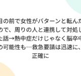 目の前で女性がバターンと転んだので、周りの人と連携して対処した話→熱中症だけじゃなく脳卒中の可能性も…救急要請は迅速に、正確に