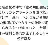 広陵高校の件で「寮の規則違反とはいえカップラーメンを食べた」だけで「暴行」へとつながる論理の飛躍がDVやカルトの洗脳で用いられるやつでギョッとした話…強い統制と暴力が生まれるしくみの解説も