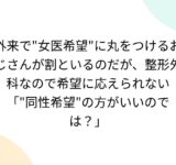 外来で"女医希望"に丸をつけるおじさんが割といるのだが、整形外科なので希望に応えられない「"同性希望"の方がいいのでは?」