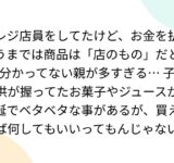 レジ店員をしてたけど、お金を払うまでは商品は「店のもの」だと分かってない親が多すぎる… 子供が握ってたお菓子やジュースが涎でベタベタな事があるが、買えば何してもいいってもんじゃない