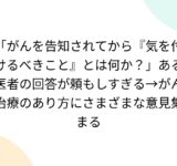 「がんを告知されてから『気を付けるべきこと』とは何か?」ある医者の回答が頼もしすぎる→がん治療のあり方にさまざまな意見集まる