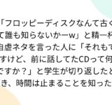 「フロッピーディスクなんて古くて誰も知らないかーw」と精一杯自虐ネタを言った人に「それもですけど、前に話してたCDって何ですか?」と学生が切り返したとき、時間は止まることを知った