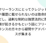 フリーランスにとってクレジットや履歴に載せられないのは致命的だし、過剰な制約は独禁法的に問題が起きるかもという話にフリーランスの方々から疑問やアドバイスが集まる