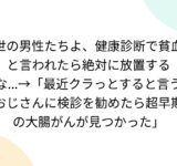 世の男性たちよ、健康診断で貧血と言われたら絶対に放置するな…→「最近クラっとすると言うおじさんに検診を勧めたら超早期の大腸がんが見つかった」