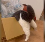 運動神経が鈍い猫さんによる「箱の入り方があまりにも鈍臭い動画」超絶ジタバタしつつも絶対に諦めない姿勢で成し遂げる