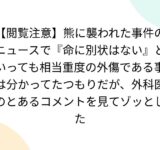 【閲覧注意】熊に襲われた事件のニュースで『命に別状はない』といっても相当重度の外傷である事は分かってたつもりだが、外科医のとあるコメントを見てゾッとした